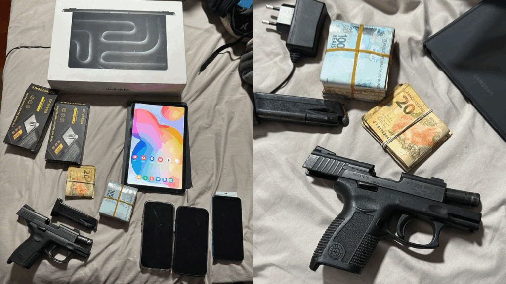 O material apreendido será analisado e deve subsidiar novas fases da investigação e a responsabilização de todos os envolvidos. Além de celulares, foram encontrados maços de dinheiro, armas e outros eletrônicos.