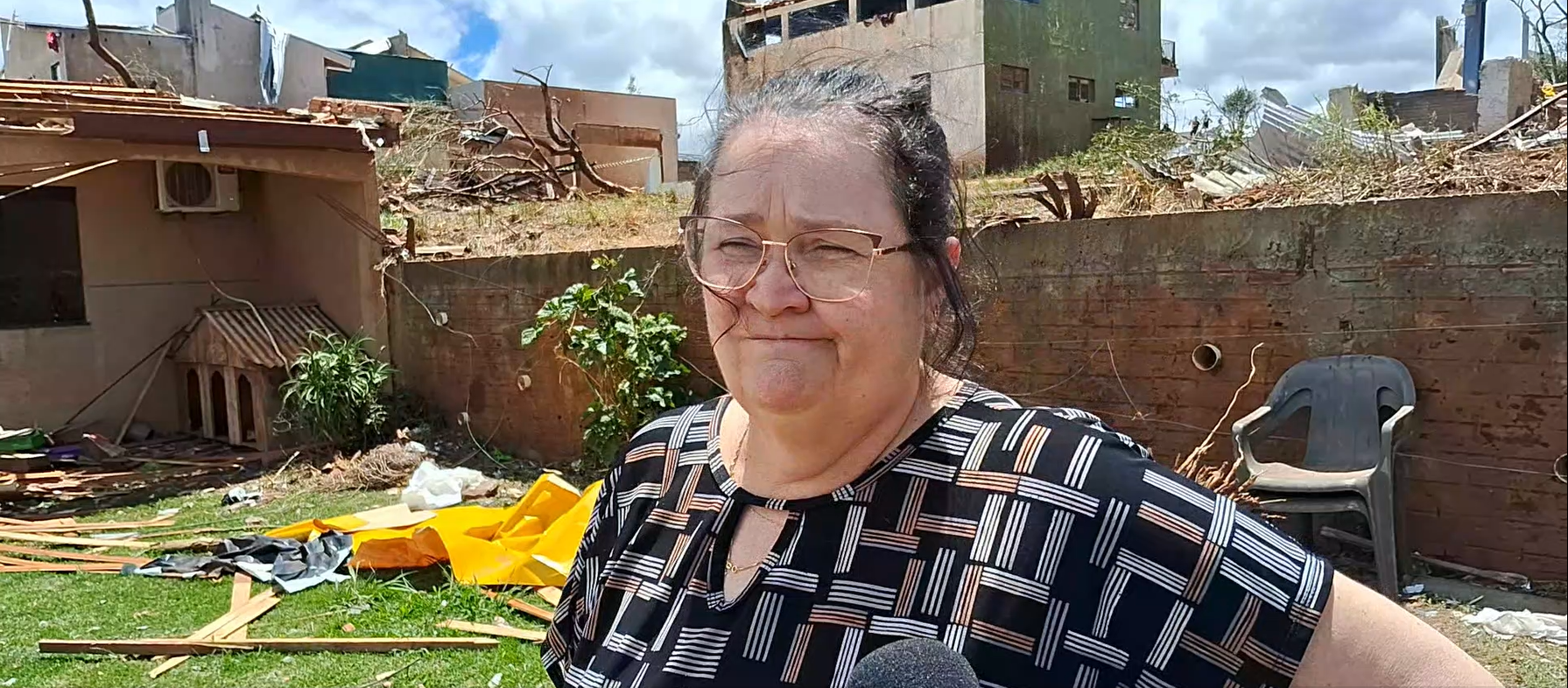 A moradora Eloudi Maria Dilce descreveu os momentos de pânico vividos com a filha durante a passagem do tornado. Segundo ela, tudo aconteceu em questão de segundos. “Eu nunca vi nada parecido, só em filme. Foram 40 segundos de puro horror”, relatou.