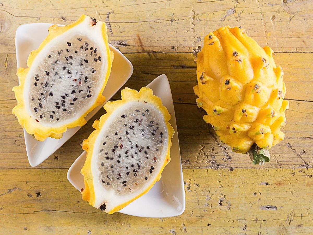 Para acertar na escolha da fruta‑do‑dragão, procure uma pitaya com a casca bem colorida, como a vermelha‑rosada ou amarela e sem manchas escuras ou rachaduras. Veja se as folhas da casca estão levemente secas ou amarronzadas esse é indício de que a fruta está madura.